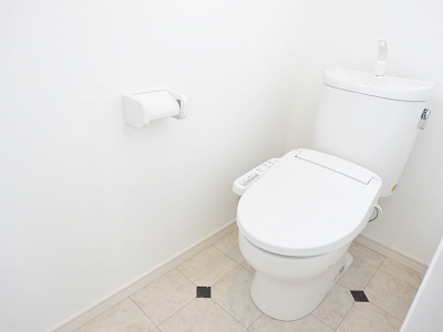【 トイレ 】・・・床クッションフロアのブラックのアクセントが、モダンな空間を演出してくれています(o ・∀・)