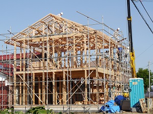 とてもいいお天気で素晴らしい秋晴れの中、無事に棟上げと屋根仕舞いまで行うことができました(´∀`○)