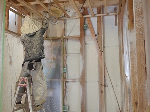 現場で吹き付けて発泡させるという方法で施工する、安定した品質と、高い断熱性をもつ断熱材