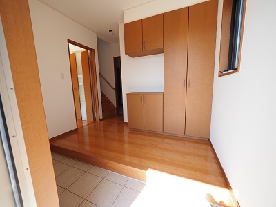 【 玄関と土間収納 】・・・玄関に土間収納をつくりました。子供の遊び道具や趣味の道具をしまえて便利です♪