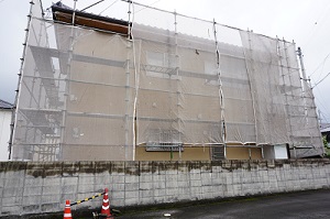 まず足場を組んで、家のまわりに養生(シートを張る)をしました!![]()